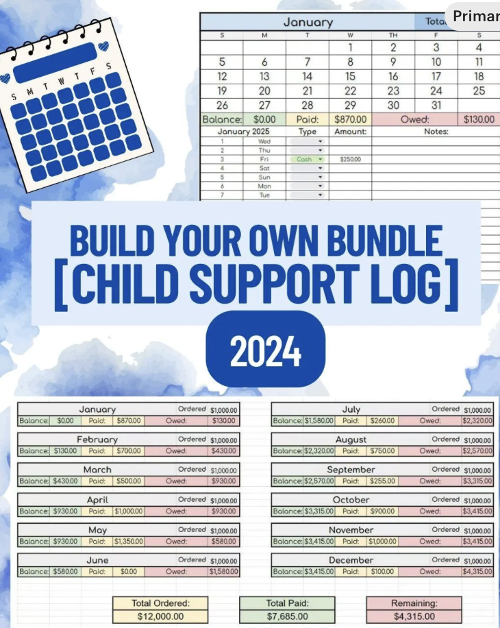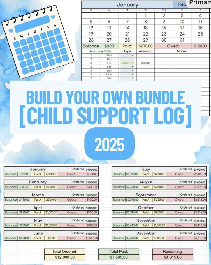 We offer a Google Sheets calendar designed to help you easily track and document child support.